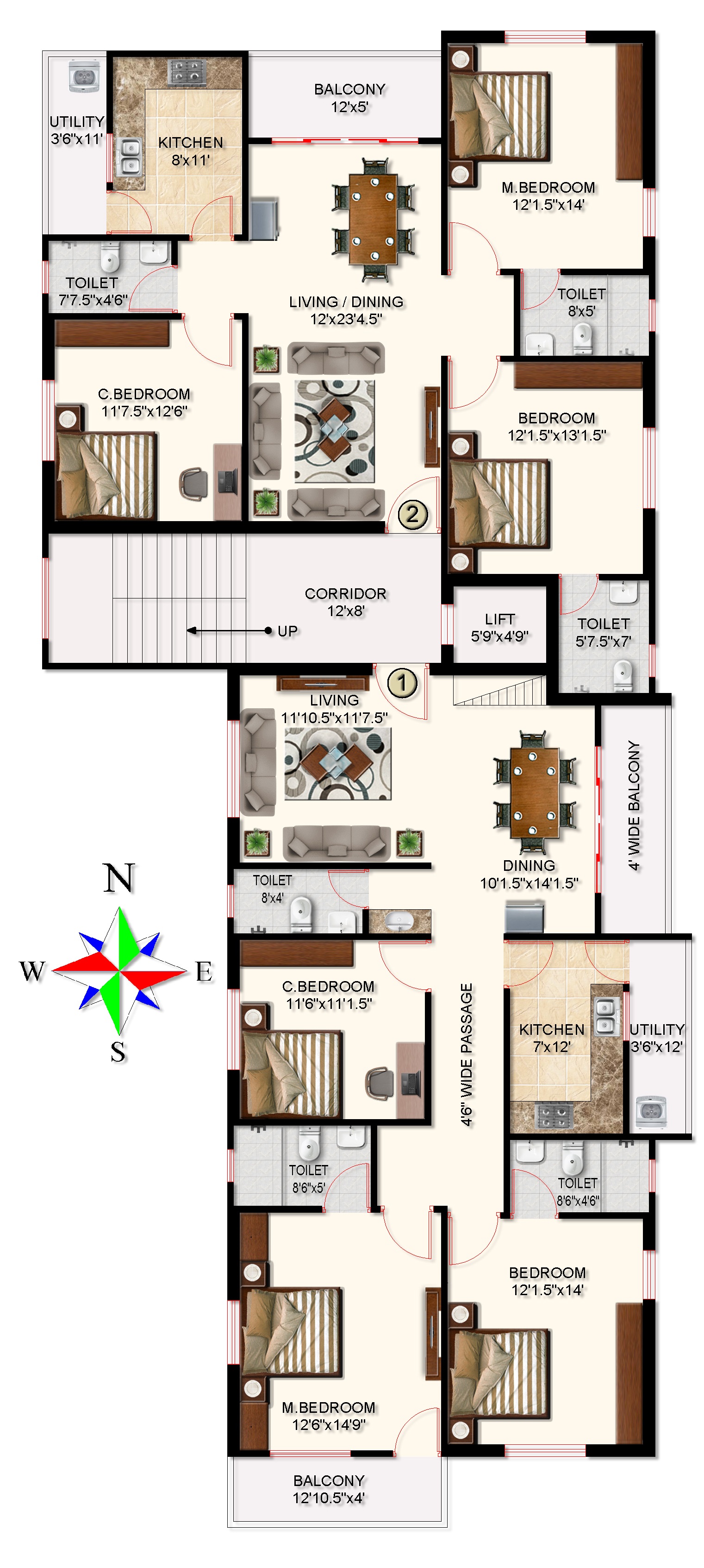 With just two spacious flats per floor, the layout ensures maximum privacy, functionality cross-ventilation and natural light.
